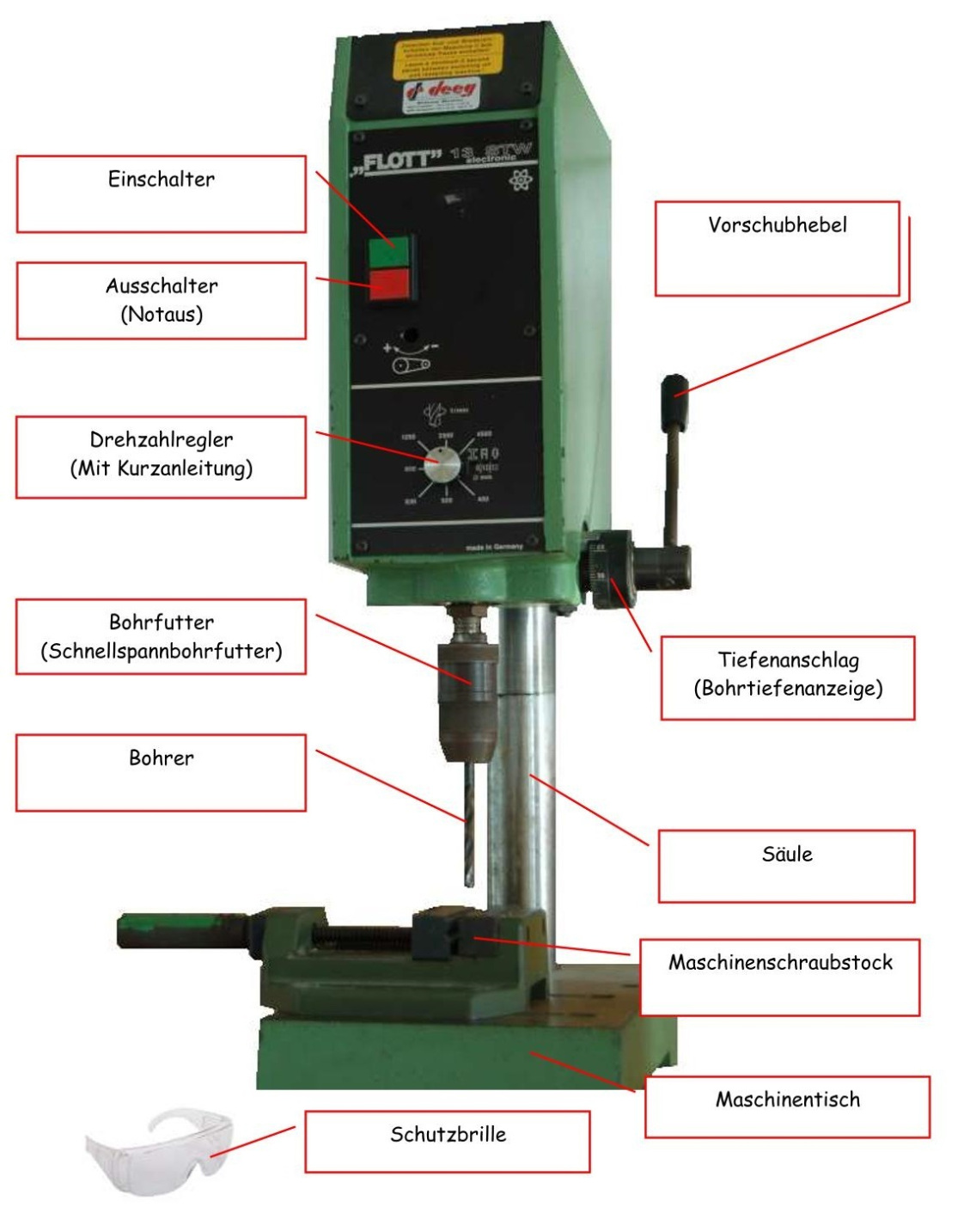 ...und ordne die Baugruppen der Tischbohrmaschine zu.