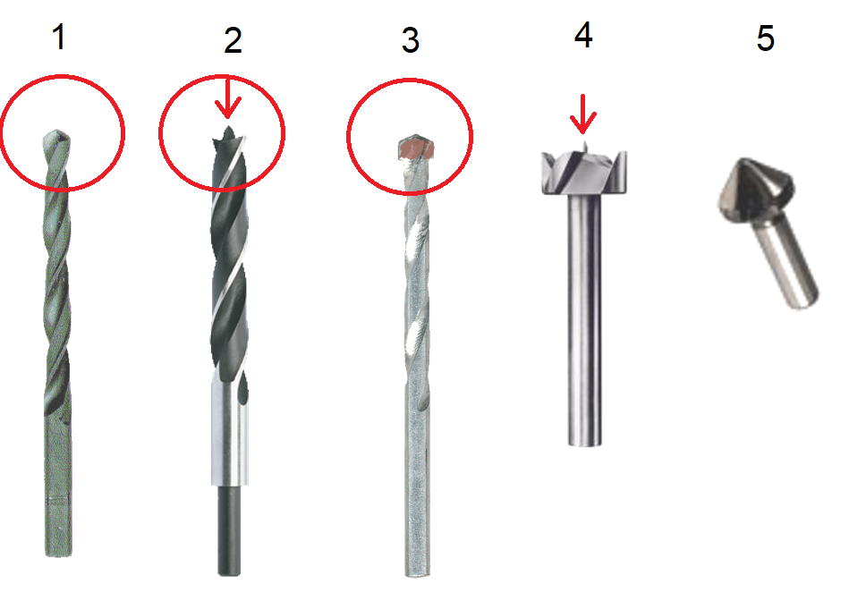 Gut zu erkennen an der Zentrierspitze. Mit diesem Boher kannst du Holz bohren.