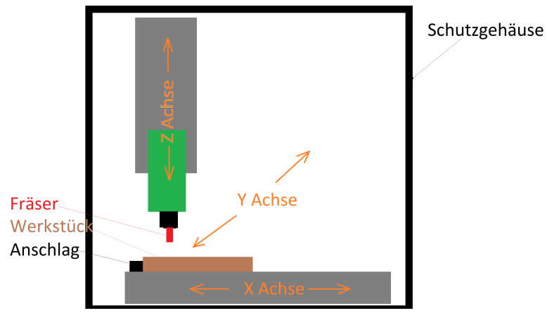 Die KOSY-Fräsmaschine besitzt insgesamt drei Achsen. Die X-, Y- und Z Achse.