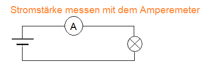 Das Amperemeter zeigt die elektrische Stromstärke in Ampere (A) an.