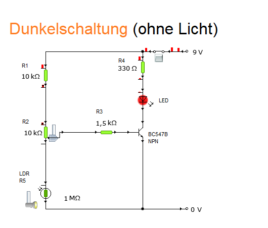 Eine weitere "einfache" Schaltung ist die sogenannte Dunkelschaltung (oder Dämmerungschaltung).