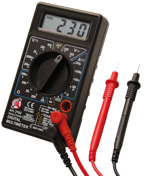 Möglicherweise ist das Prüfen mit dem Multimeter erforderlich. Achte beim Messen mit dem Multimeter stets darauf, dass du mit der größten Einheit beginnst.