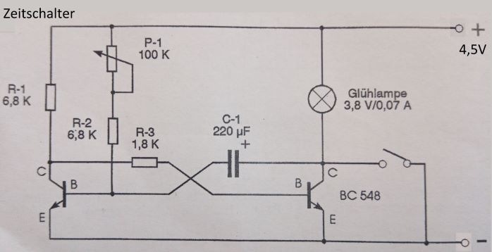 Dadurch schaltet der Transistor durch und die Lampe leuchtet.