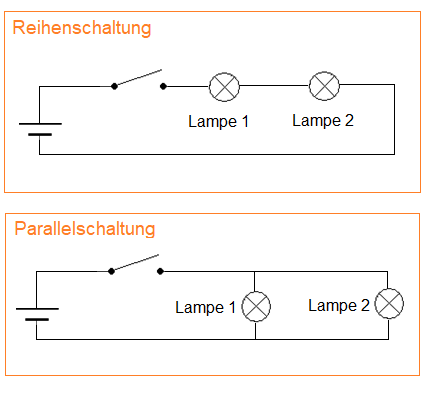 Bei der Reihenschaltung werden die Lampen hintereinander verbaut.