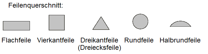 Es gibt unterschiedliche Querschnitte bei Feilen. Je nach Form der zu bearbeitenden Oberfläche wird der passende Querschnitt gewählt.