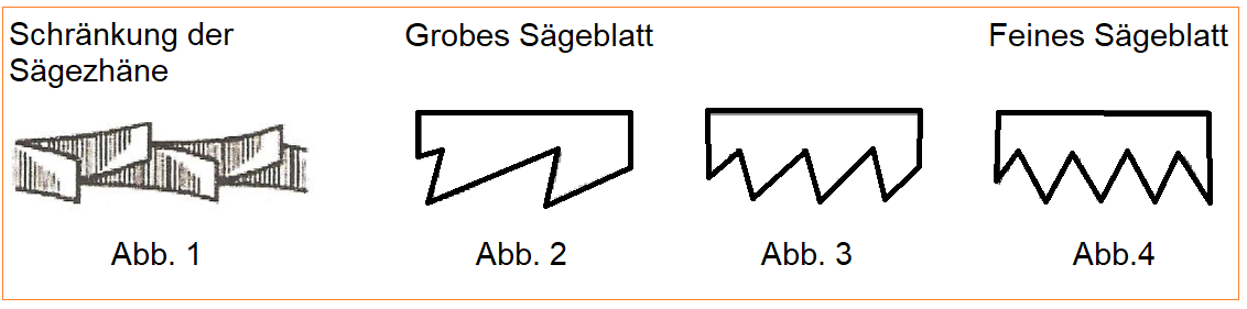 Je größer die Sägezähne (Abb.2) desto gröber der Sägeschnitt. Für feine Sägeschnitte wird also eine Säge mit kleinen Sägezähnen (Abb.4) benötigt.