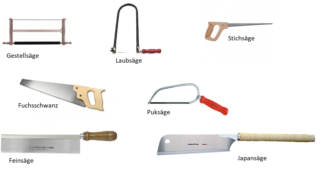 Sägen werden grundsätzlich in zwei Gruppen eingeteilt. Eingespannte und nicht eingespannte Sägen.