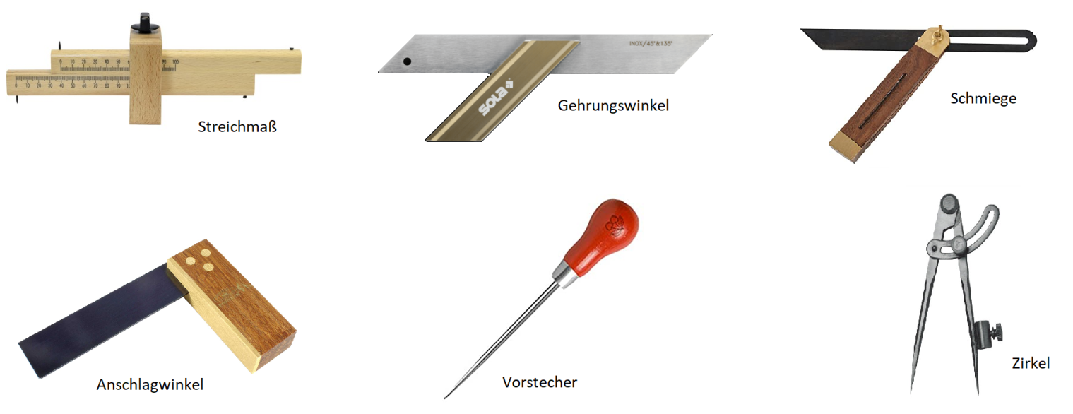 - Anschlagwinkel, Feinsäge, Schleifpapier, Bleistift, Leim, Hammer.