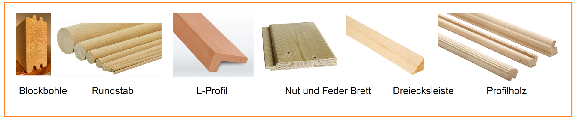 Wenn das Schnittholz getrocknet ist können daraus weitere Varianten von Halbzeugen hergestellt werden. Zum Beispiel: