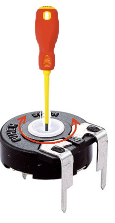 Trimmer (Abbildung) werden mit einem Schraubendreher eingestellt.
